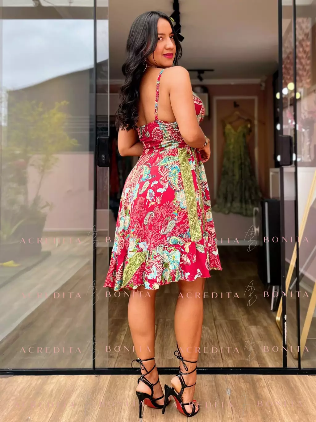 O decote em V ajustável valoriza o colo com elegância e conforto — e o melhor: pode ser usado com sutiã!